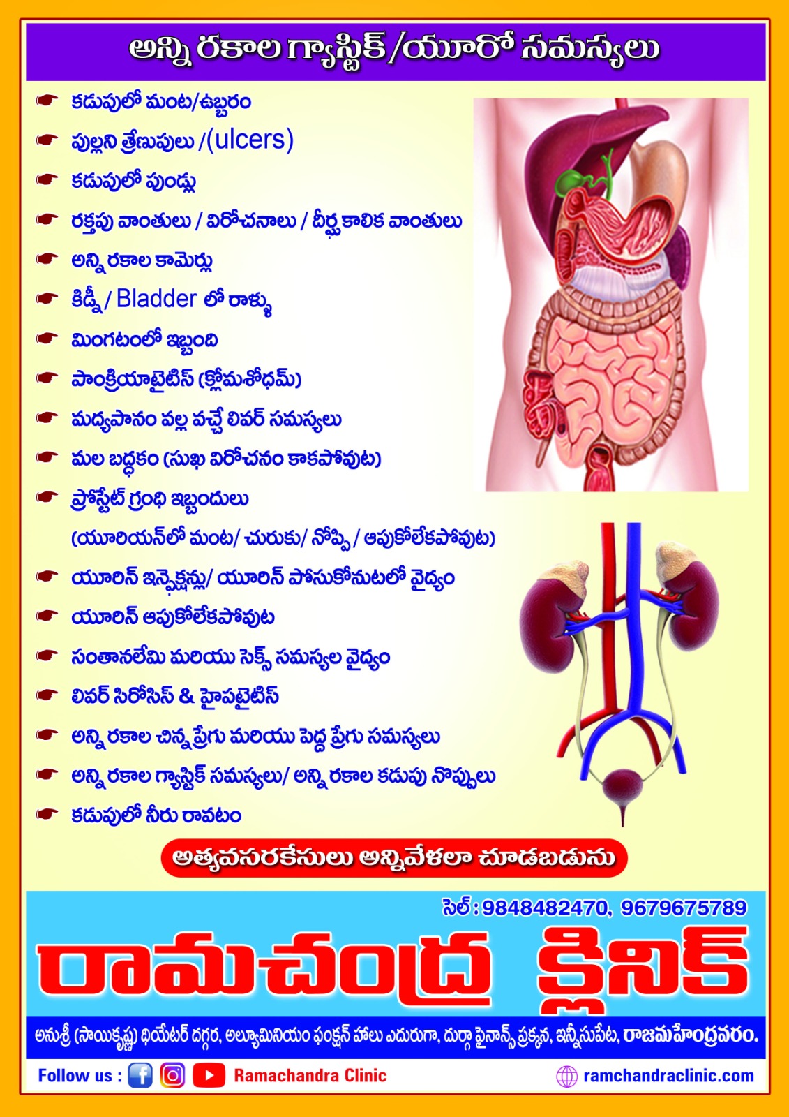 అన్ని రకముల మూత్ర వ్యాధులు-మలవ్యాధులు
