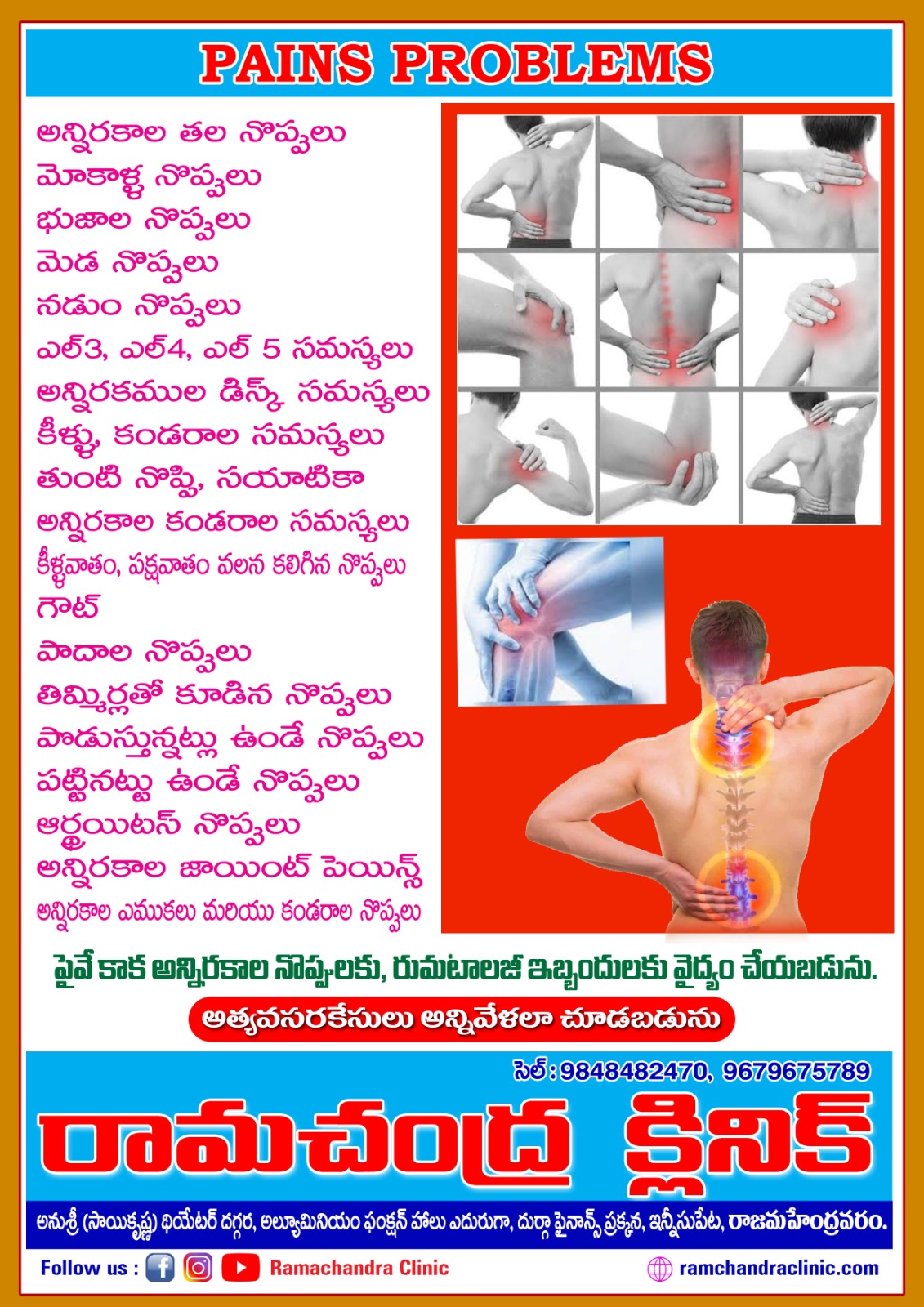 - అన్నిరకాల కీళ్ళ సమస్యలు